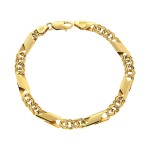 Διαχρονική και εντυπωσιακή αλυσίδα με ιδιαίτερη πλέξη από κίτρινο χρυσό 14 καρατίων (585). Η αλυσίδα είναι σκέτη και γυαλιστερή και αποτελείται από πλάκα και τρεις διπλούς κρίκους κρίκους εναλλάξ.