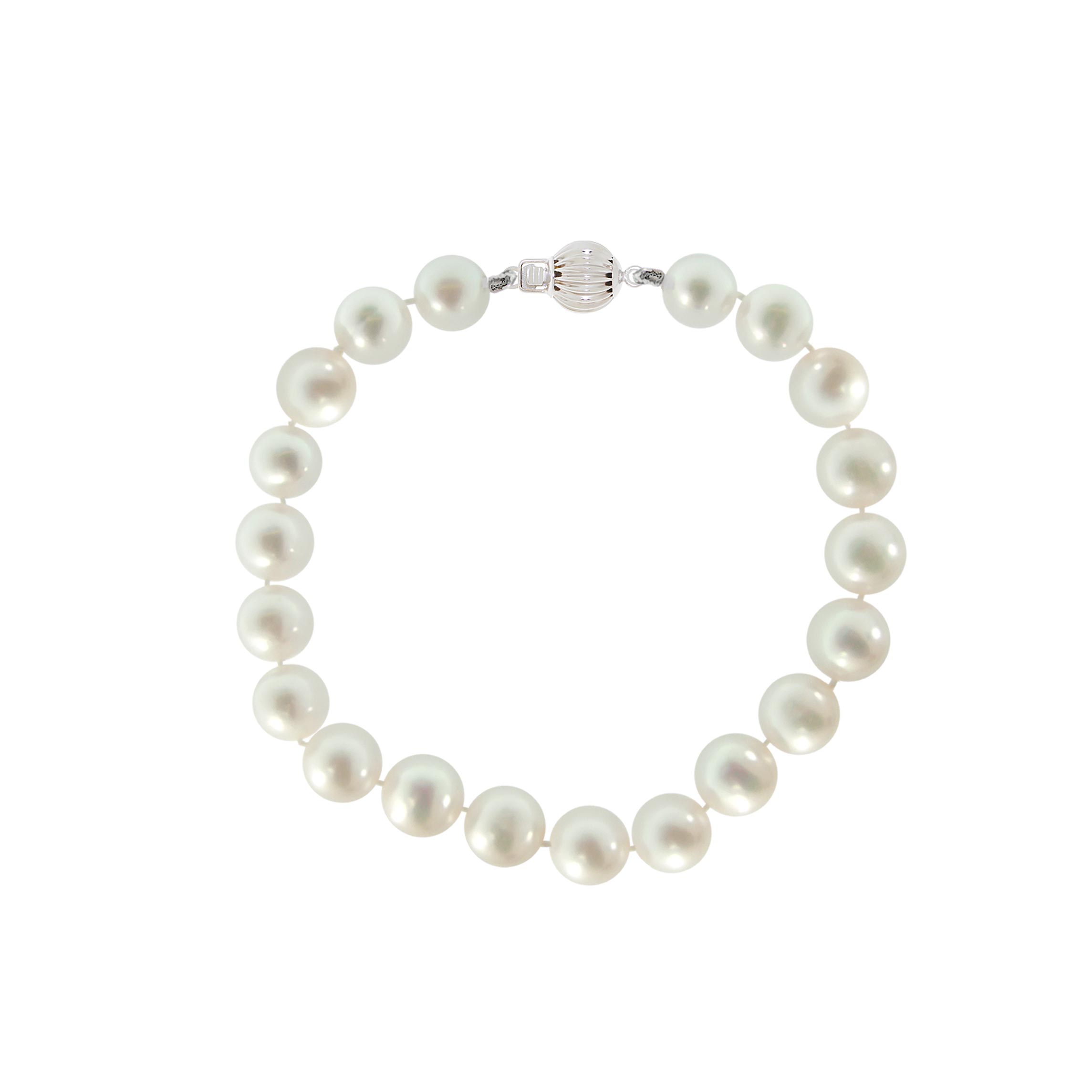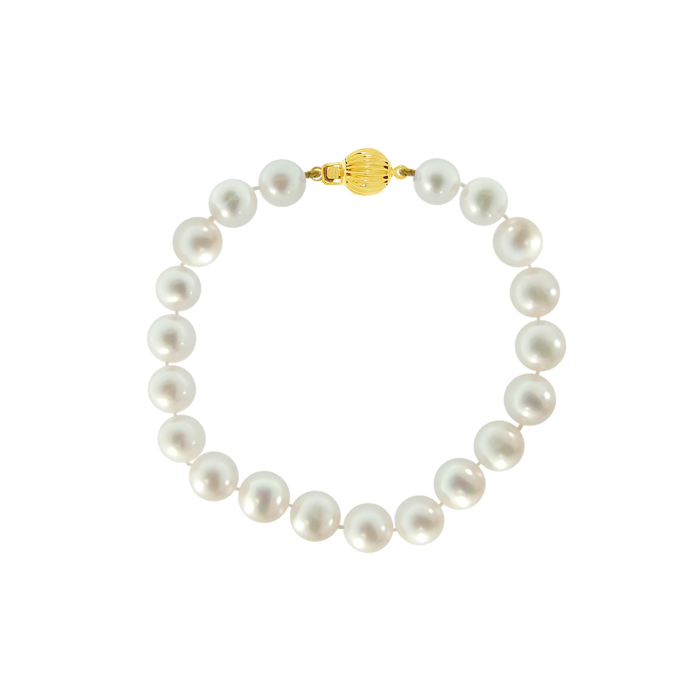 Διαχρονικό βραχιόλι με κούμπωμα από κίτρινο χρυσό 14 καρατίων (585) με εντυπωσιακά fresh water μαργαριτάρια διαμέτρου 8-9 χιλιοστών.