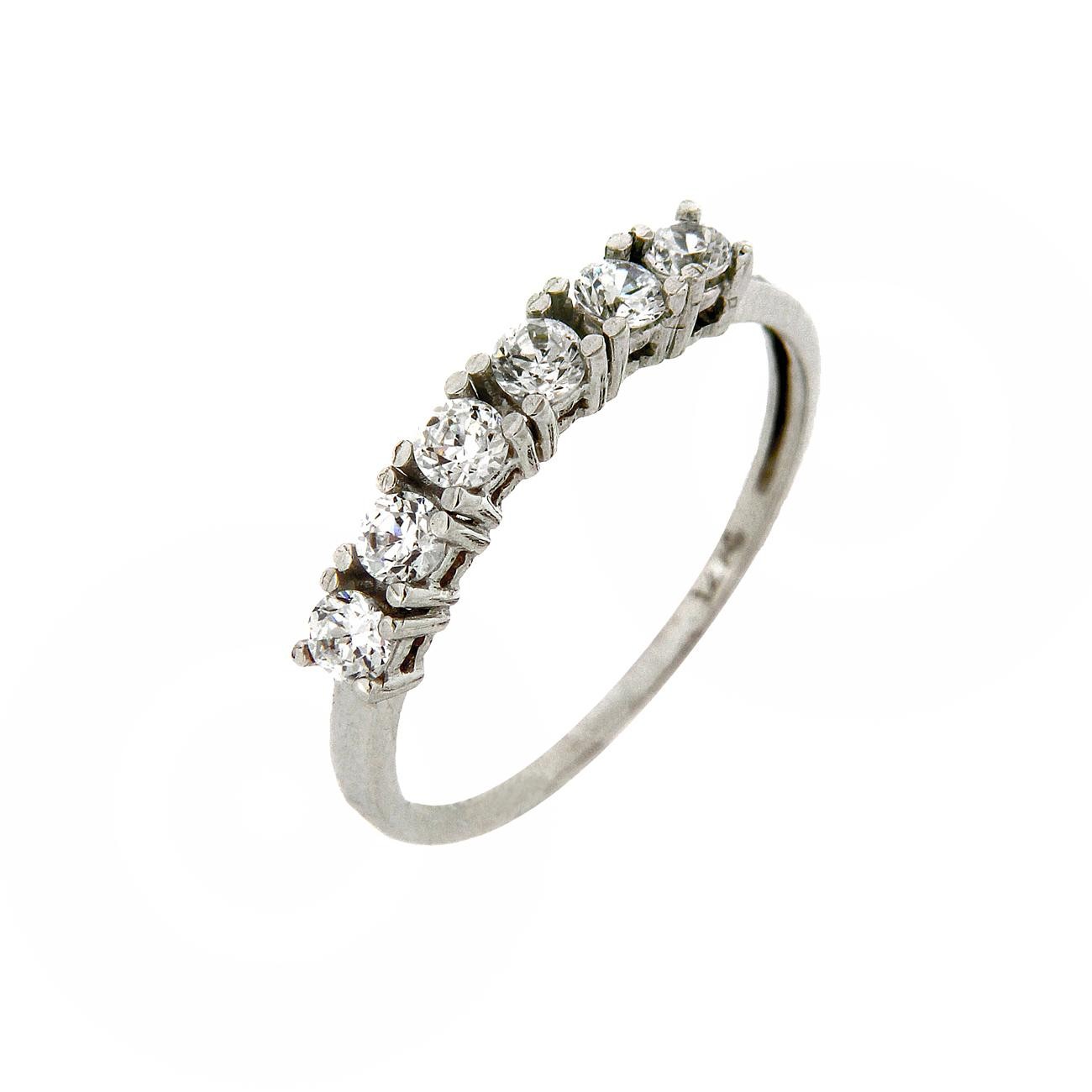 Κλασσικό, λευκόχρυσο, λαμπερό δαχτυλίδι σειρέ 14 καρατίων με έξι αστραφτερές πέτρες zirgon.
