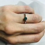 Μίνιμαλ δαχτυλίδι ροζέτα από λευκόχρυσο 9 καρατίων με αστραφτερές, συνθετικές ζιργκόν πέτρες,του ίδιου μεγέθους που σχηματίζουν κύκλο σε μπλε χρώμα όλες.
