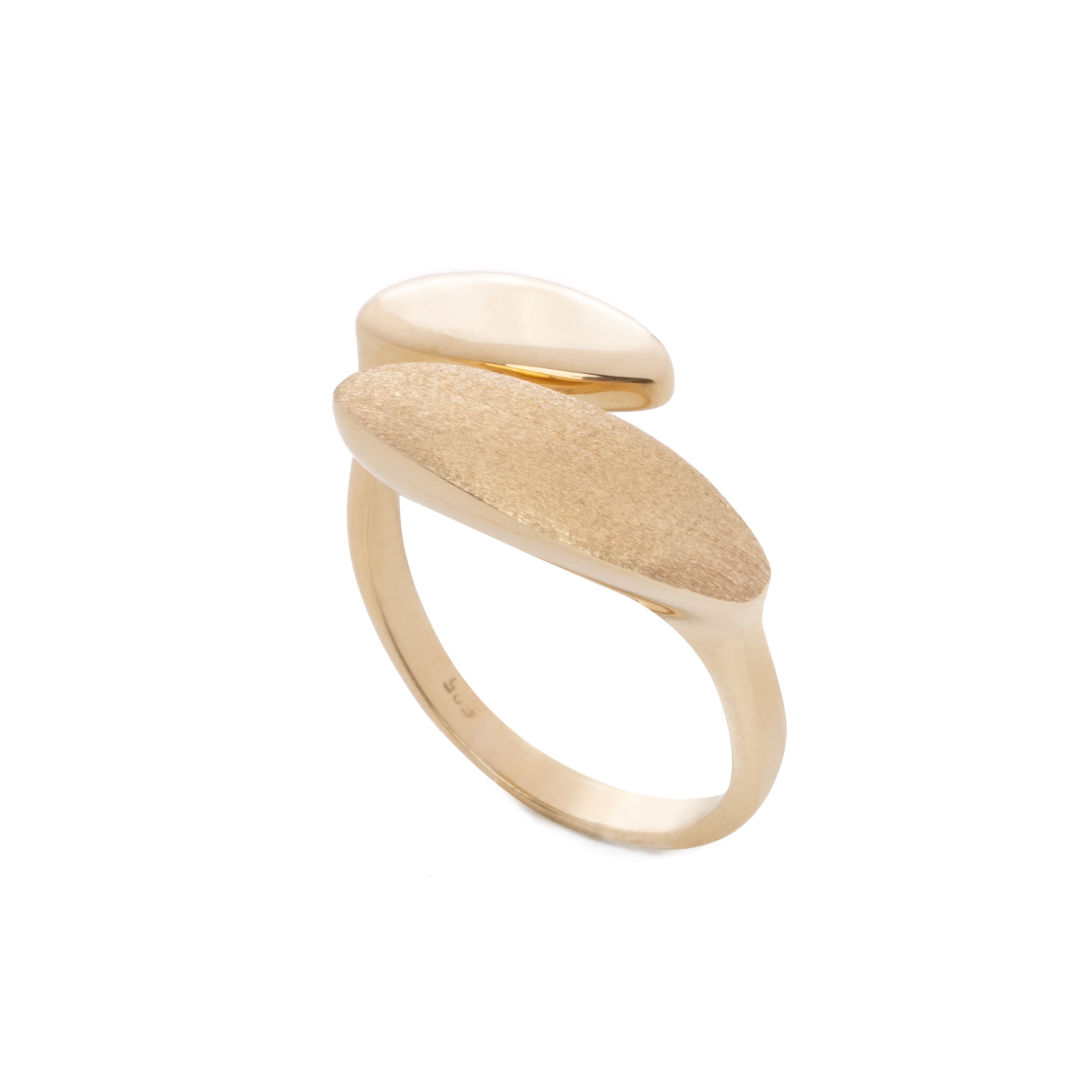 Δαχτυλίδι γυαλιστερό και ματ από κίτρινο χρυσό 14 καρατίων(585) σκέτο χωρίς πέτρες με ιδιαίτερο σχήμα.