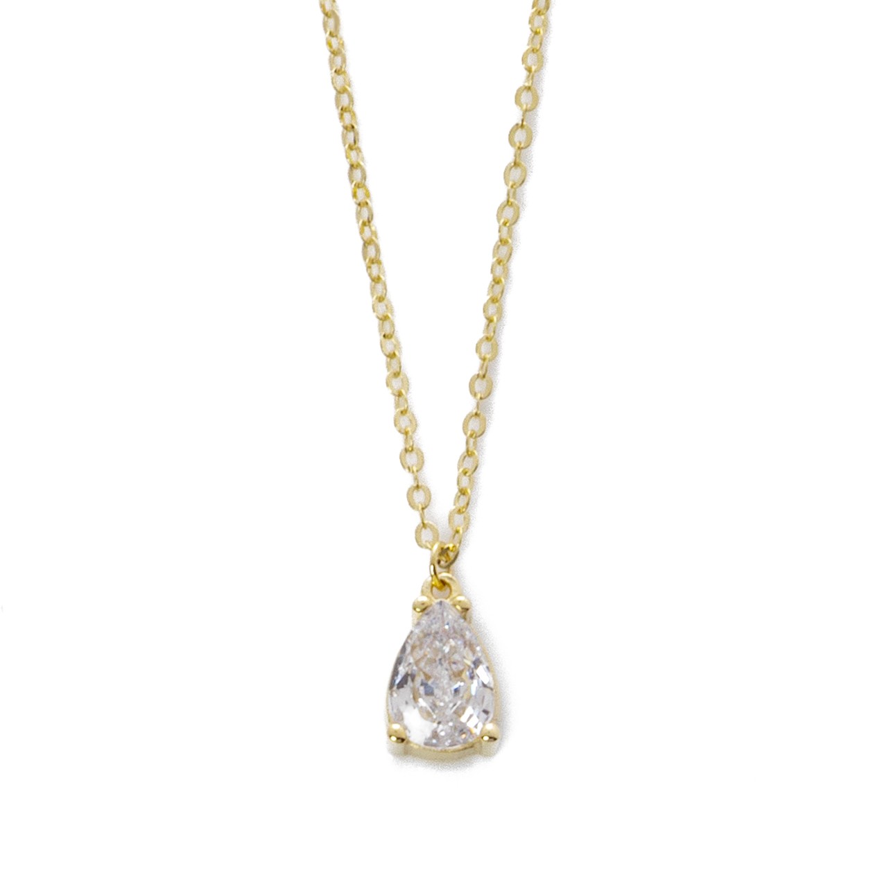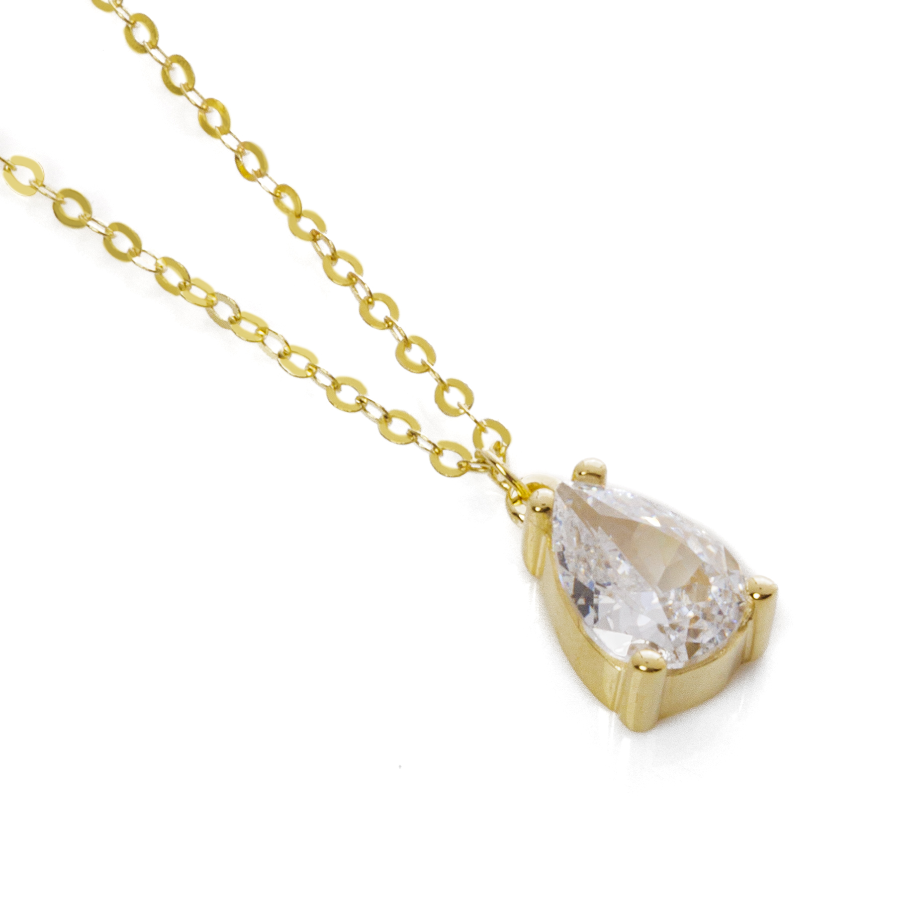 Κολιέ κρεμαστό από κίτρινο χρυσό 9 καρατίων (375) με μία ζιργκόν πέτρα κοπής pear.