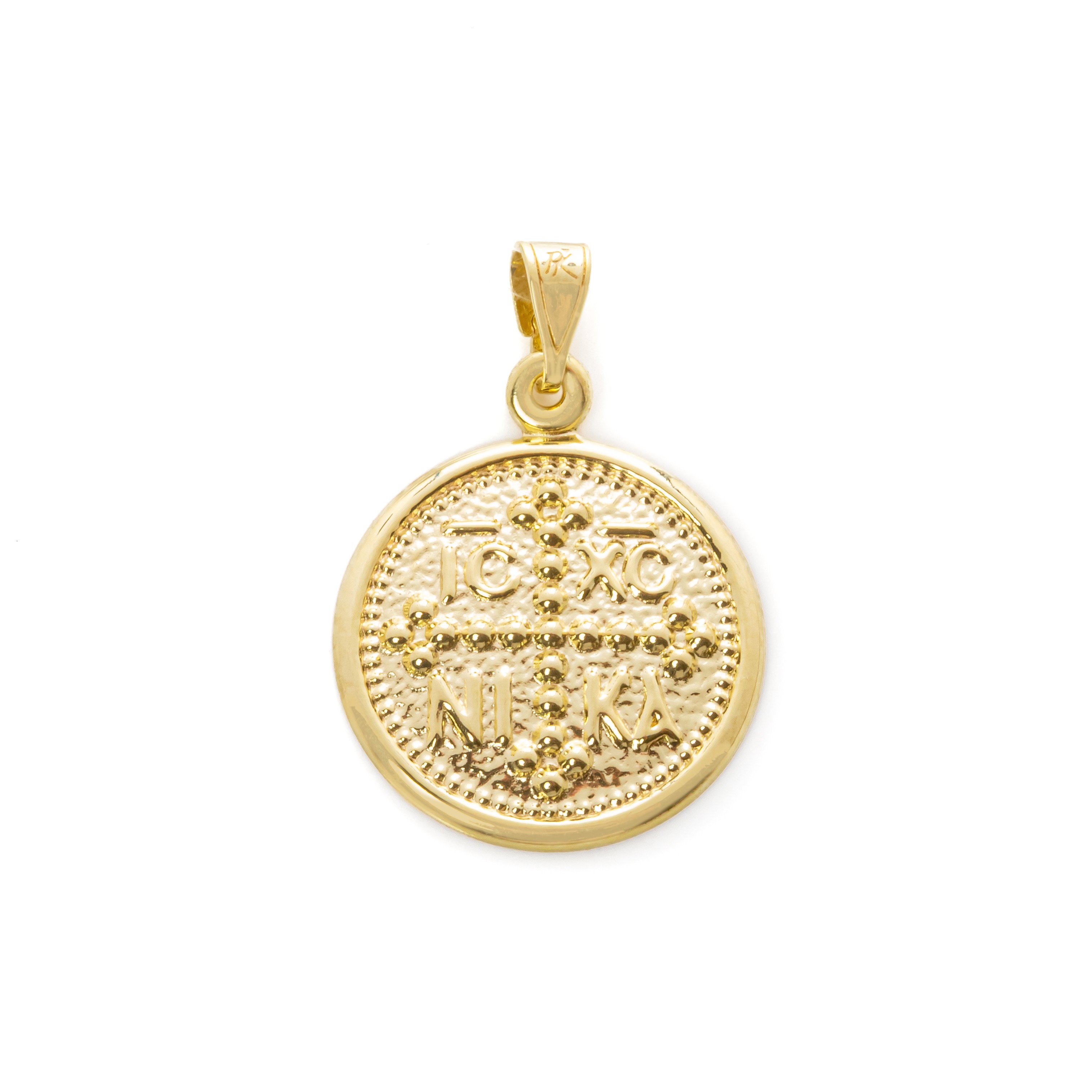 Κρεμαστό κωνσταντινάτο και Παναγία από κίτρινο χρυσό 9 καρατίων (375) σε στρογγυλό σχήμα.