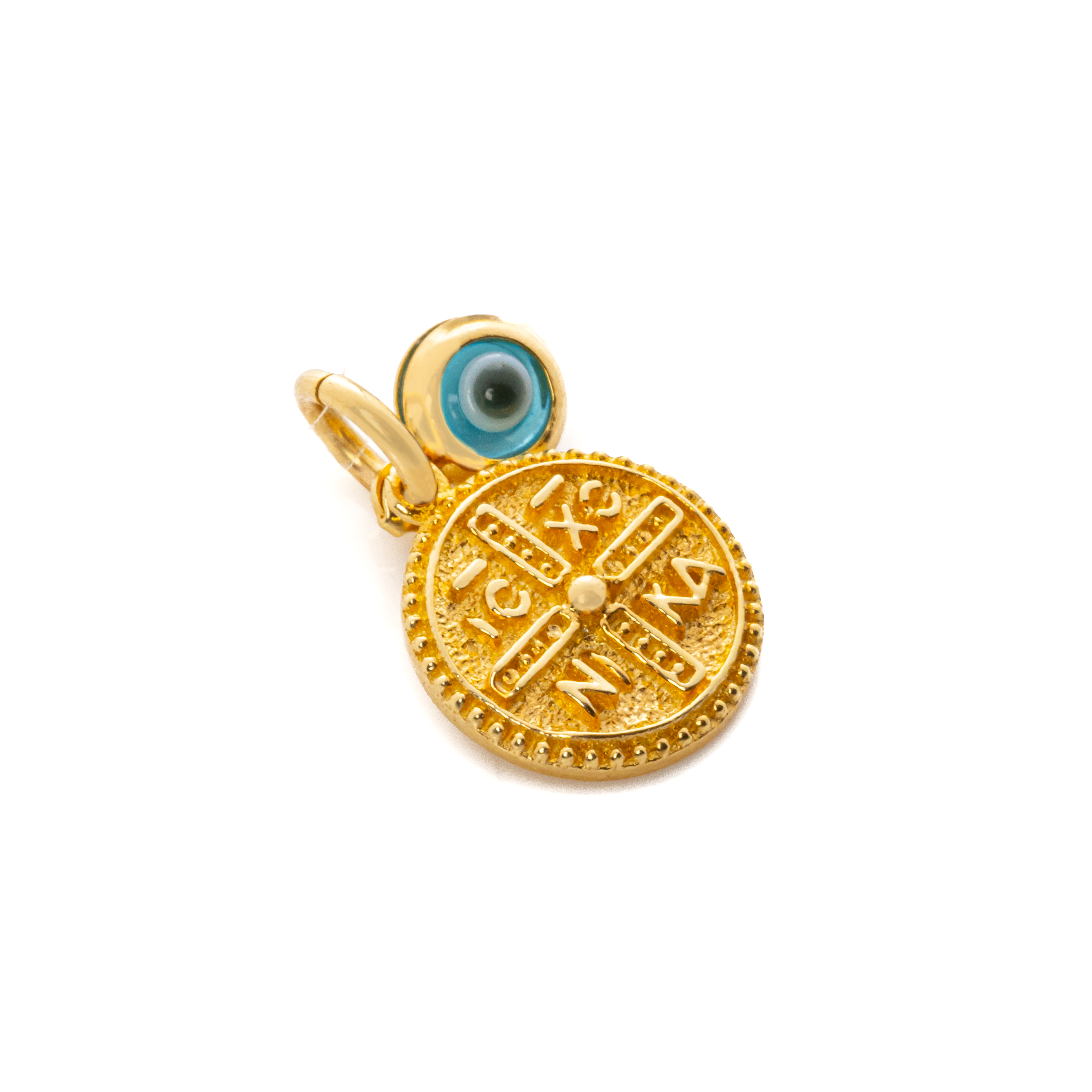 Διαχρονικό, κλασσικό κρεμαστό κωνσταντινάτο από κίτρινο χρυσό 9 καρατίων με σμάλτο και ζιργκόν.