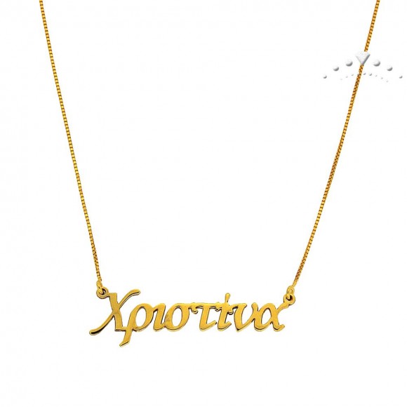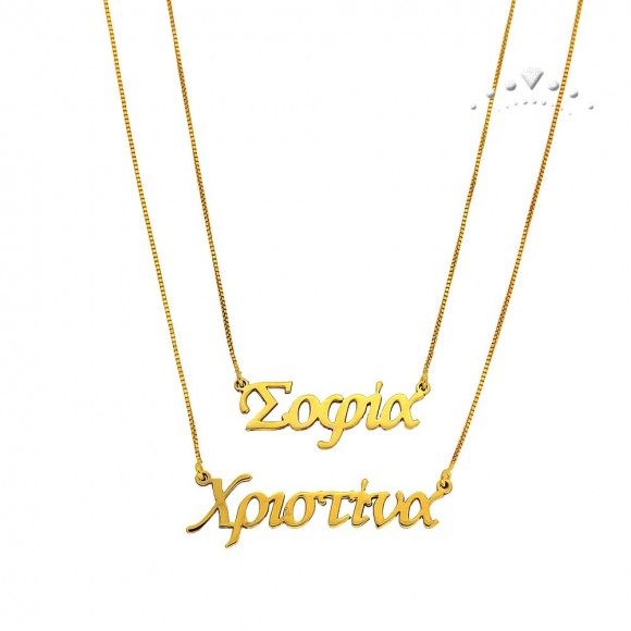 Κρεμαστό για το λαιμό σε κίτρινο χρυσό εννέα καρατίων (κ375) με ενσωματωμένη αλυσίδα. Στο μενταγίον αυτό μετά από παραγγελεία γίνεται ειδική κατασκευή με το όνομα της επιλογής σας στο γραφικό χαρακτήρα που απεικονίζεται πιο επάνω.