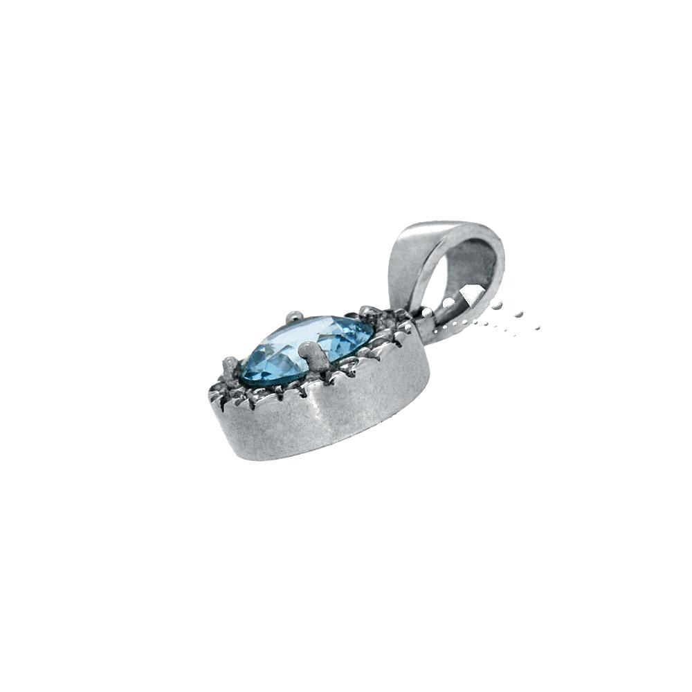 Στο κέντρο της ροζέτας υπάρχει ένα ένα πολύ όμορφο μπλε ζιργκόν (χρώματος aquamarine) και γύρω του άσπρα ζιργκόν εξαιρετικής ποιότητας, που δίνουν στο κόσμημα αστραφτερή λάμψη.