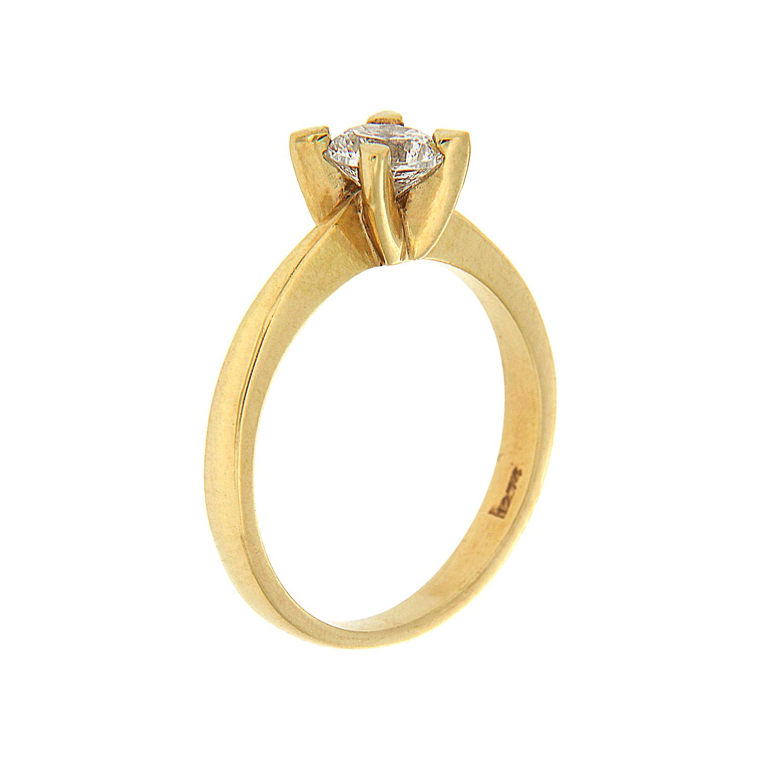 Μονόπετρο δαχτυλίδι μοντέρνο και minimal με γυαλιστερή βάση από κίτρινο χρυσό 14 καρατίων. Περιλαμβάνει συνθετική πέτρα ζιργκόν άριστης ποιότητας και με ιδιαίτερη λάμψη, η οποία στηρίζεται από τέσσερα δοντάκια.