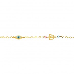 Βραχιόλι 14K χρυσό με σταυρό, μάτι και χάντρες