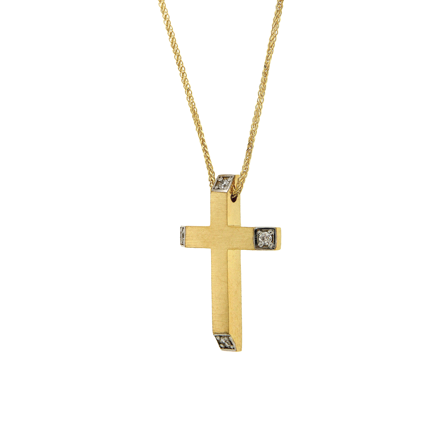 Στο σταυρό υπάρχουν διαμάντια συνολικού βάρους 0.08ct (καράτια), ποιότητας G/VS, εξαιρετικής κοπής.