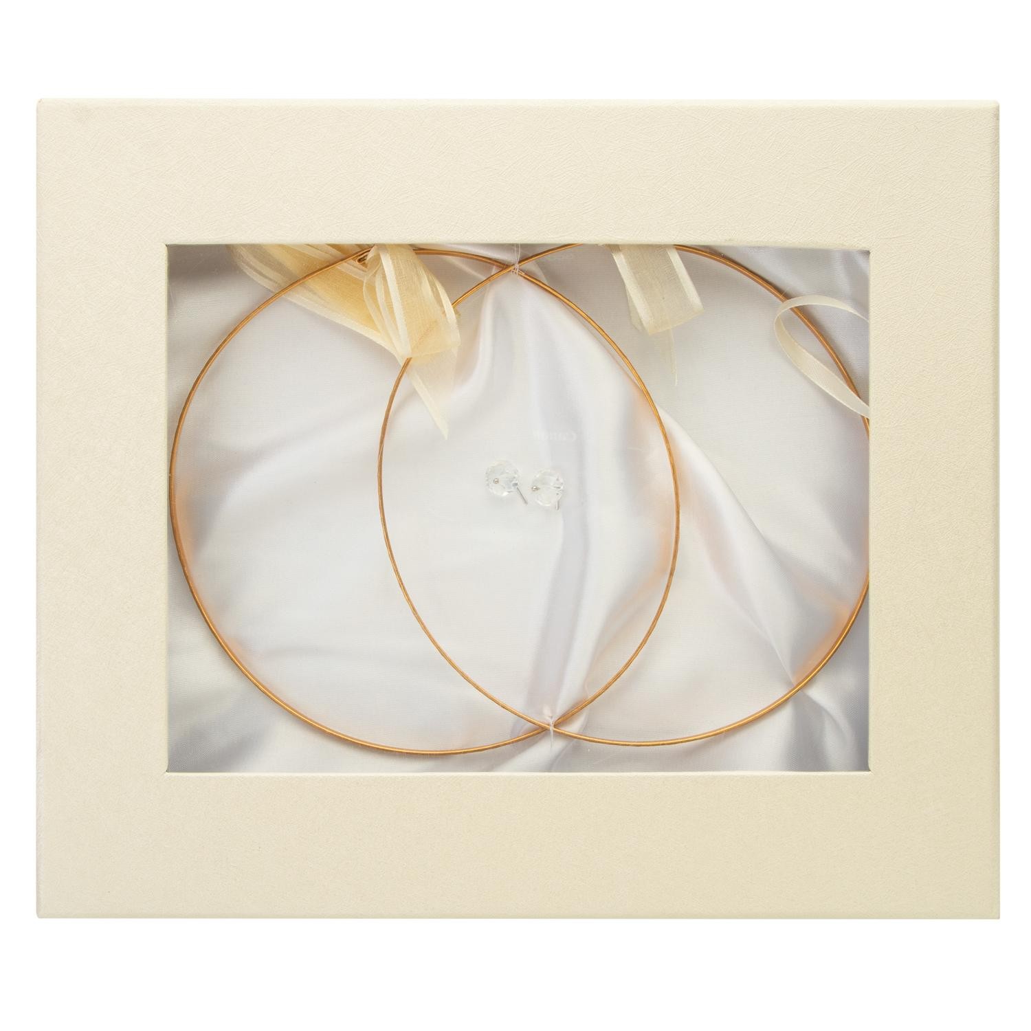 Πολυτελή, γυαλιστερά στέφανα από αργίλιο. Το σχέδιό τους είναι σφυρίλατο. Το πακέτο των στεφάνων περιέχει λευκή κορδέλα, όπως αυτή της φωτογραφίας, που ενώνει τα δύο στέφανα και δύο καρφίτσες με πέτρες Swarovksi για τα πέτα του γαμπρού και του κουμπάρου.