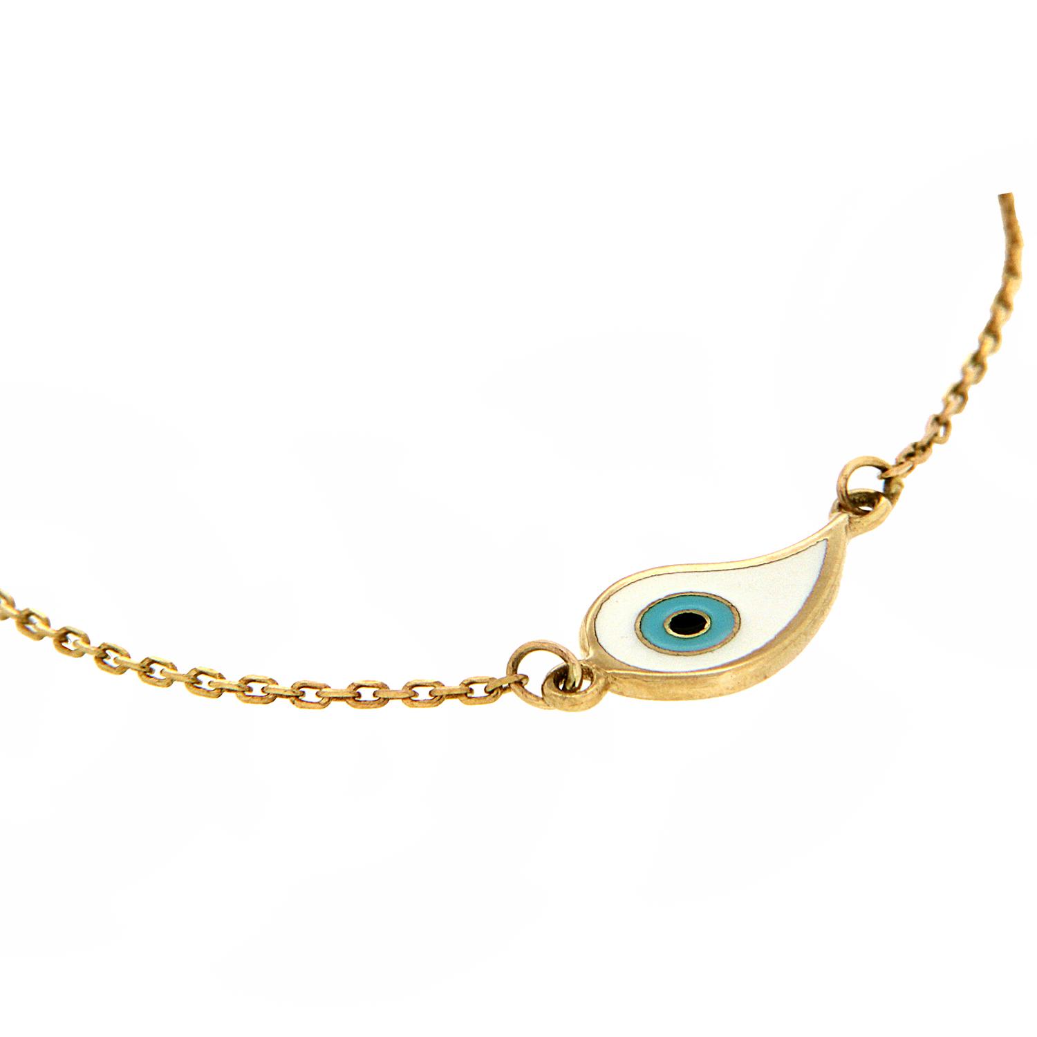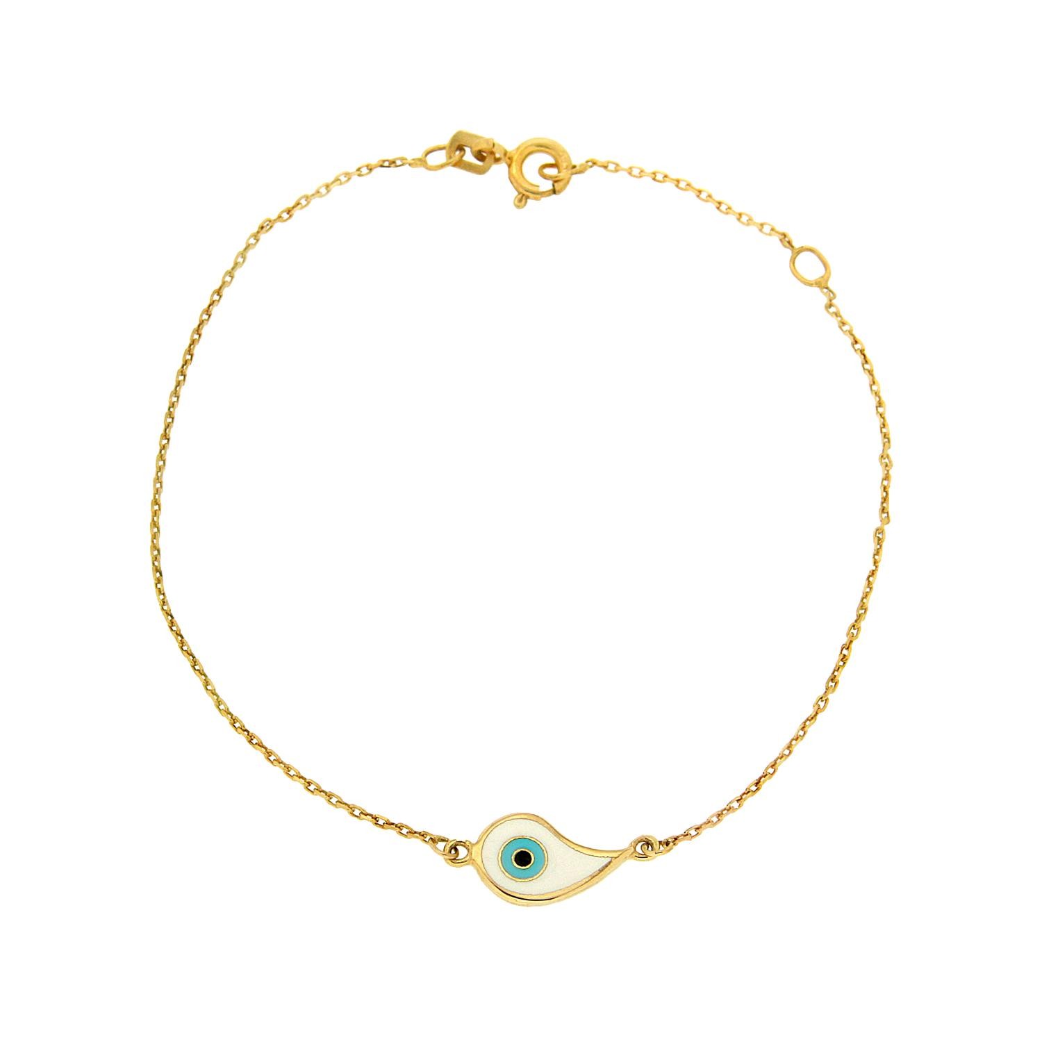 Κλασσικό και minimal κρεμαστό μάτι από κίτρινο χρυσό 14 καρατίων, με σμάλτο σε χρώμα λευκό.