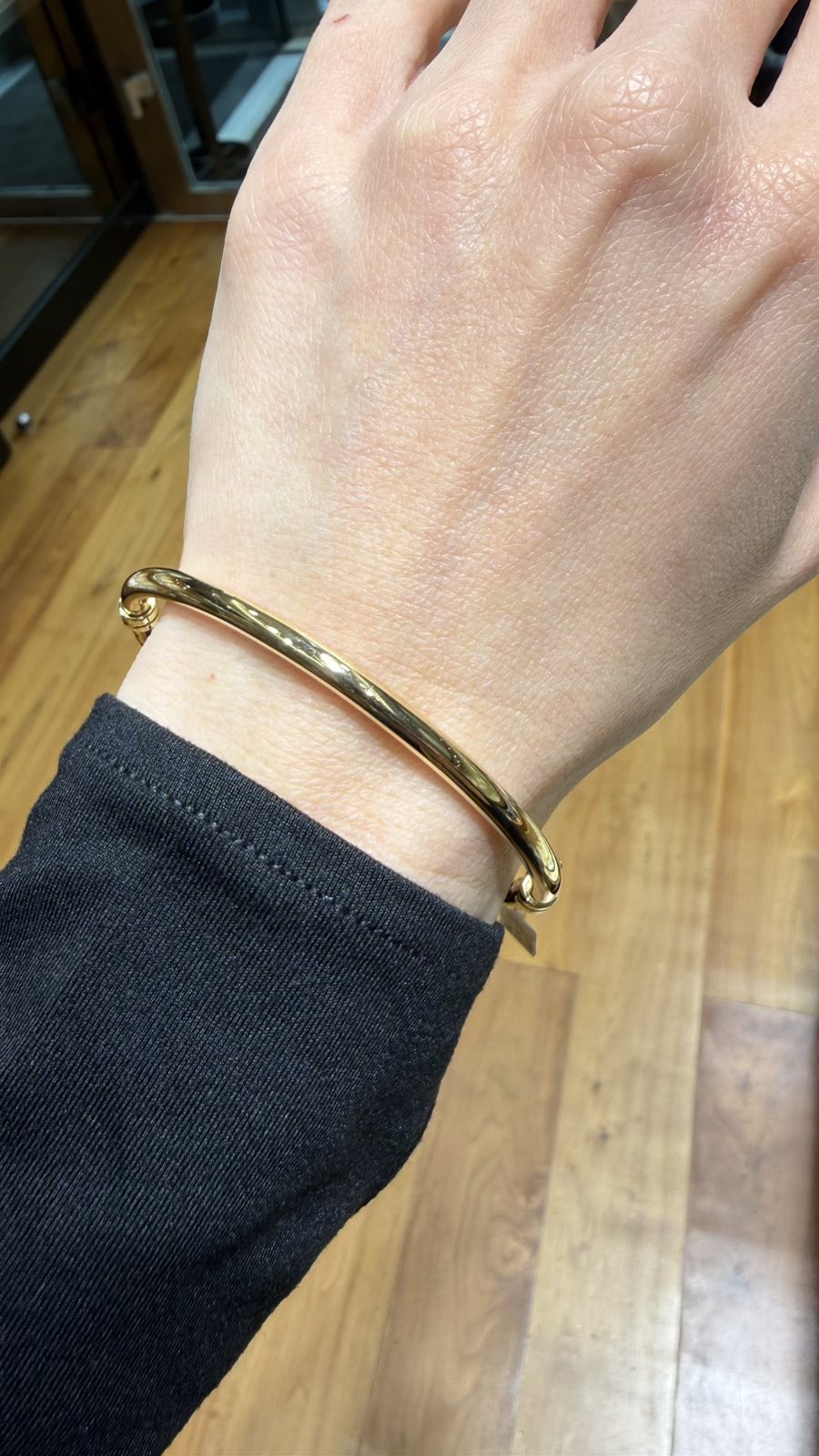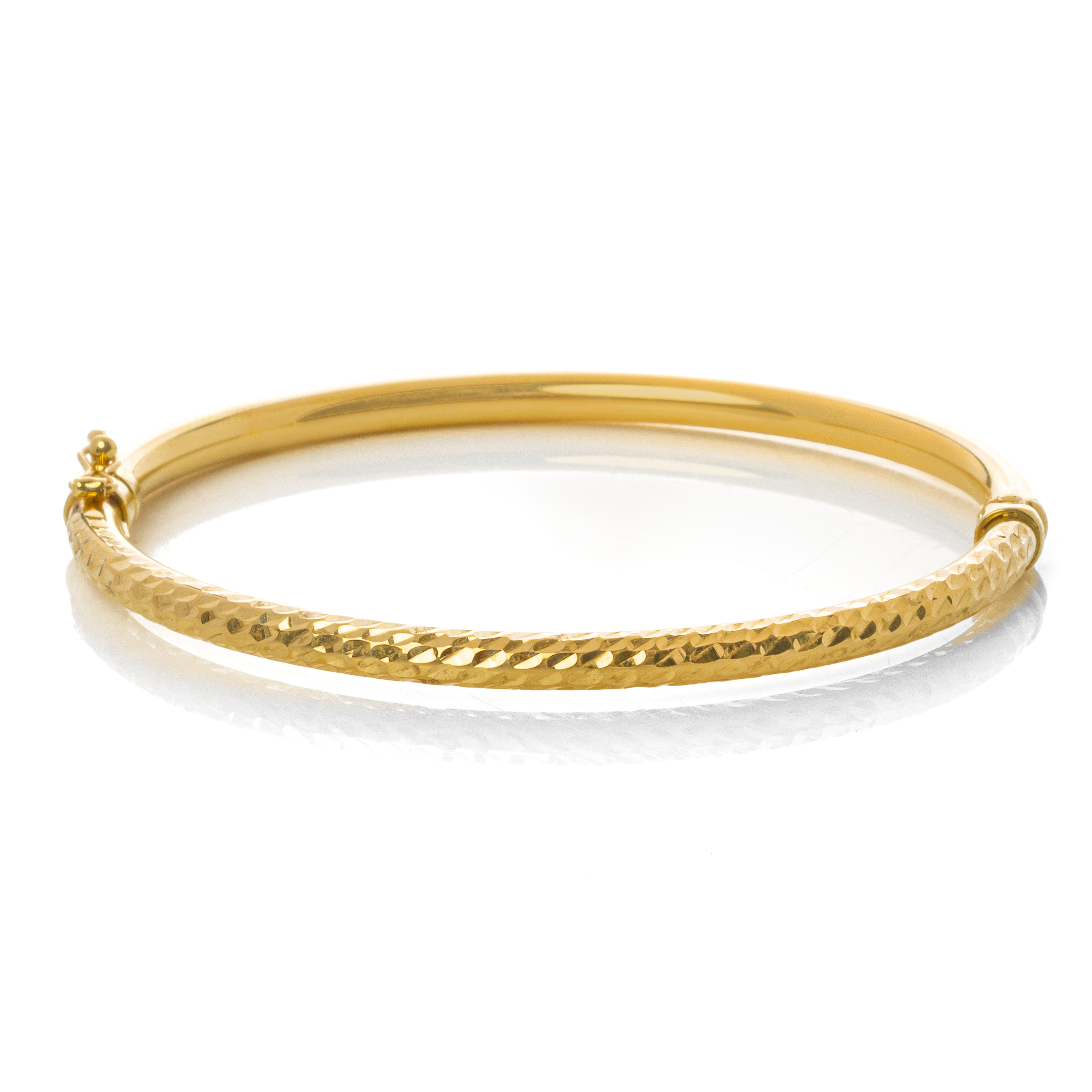 Βραχιόλι σταθερό, χειροπέδη από κίτρινο χρυσό 14 καρατίων(585). Το βραχιόλι είναι διπλής όψης με σκάλισμα στη μισή της επιφάνεια. Διαθέτει κούμπωμα ασφαλείας.