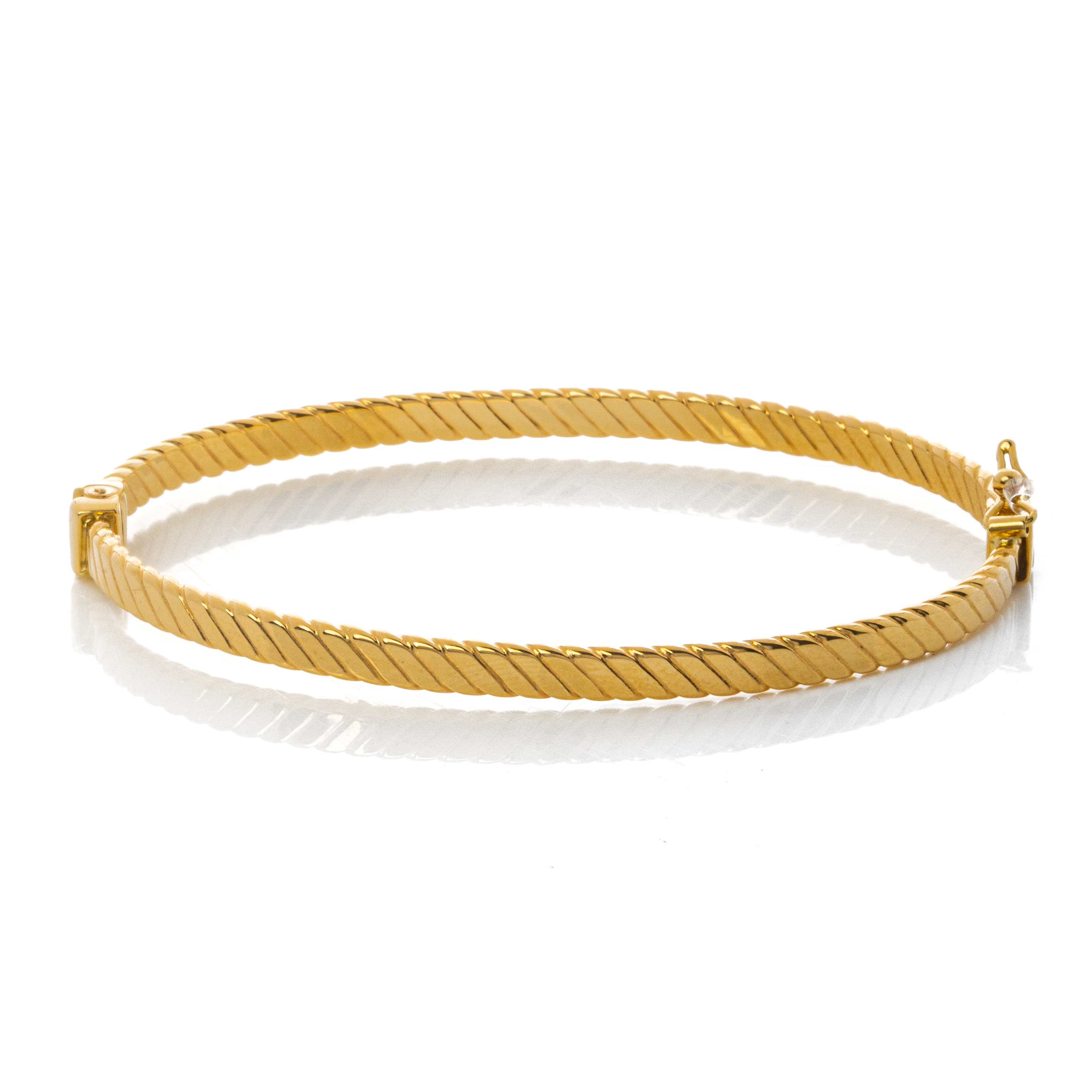 Κλασικό, σταθερό βραχιόλι σε σχέδιο χειροπέδα από κίτρινο χρυσό 14 καρατίων (585). Διαθέτει κούμπωμα ασφαλείας.