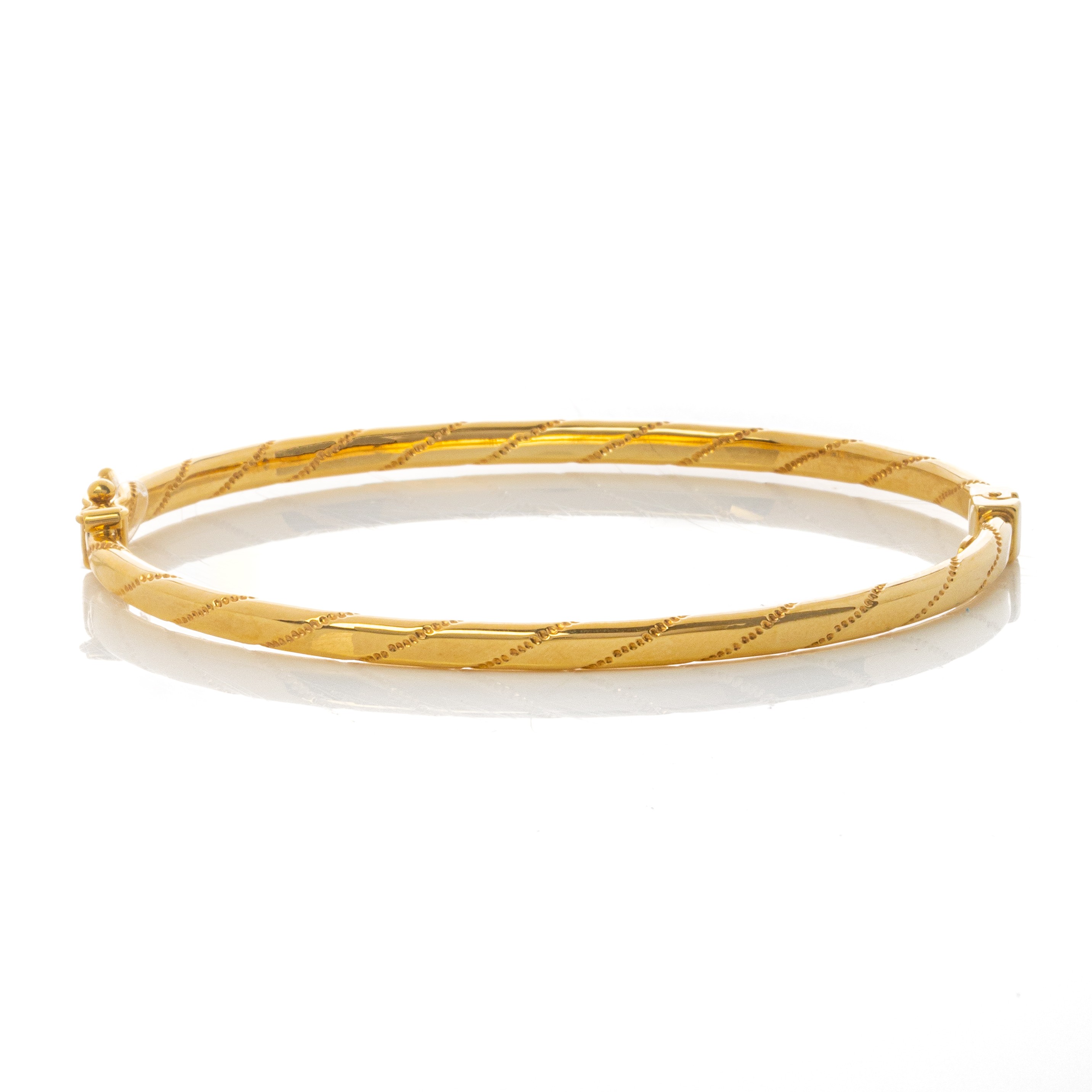 Διαχρονικό, σταθερό βραχιόλι σε χειροπέδα σκέτη από κίτρινο χρυσό 14 καρατίων.