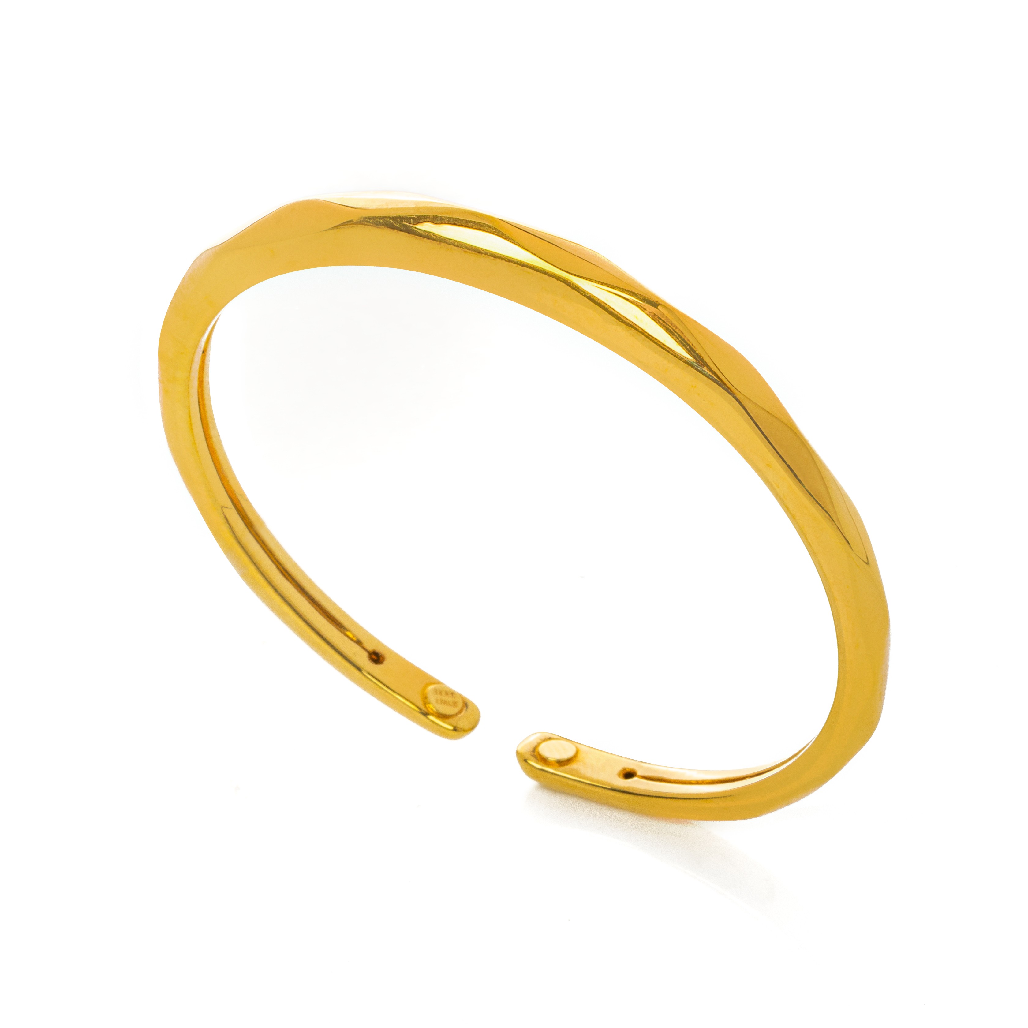 Βραχιόλι σταθερό, χειροπέδη από κίτρινο χρυσό 14 καρατίων(585). Το βραχιόλι έχει άνοιγμα στο κάτω τμήμα και σκάλισμα στο επάνω. Διαθέτει κούμπωμα ασφαλείας.