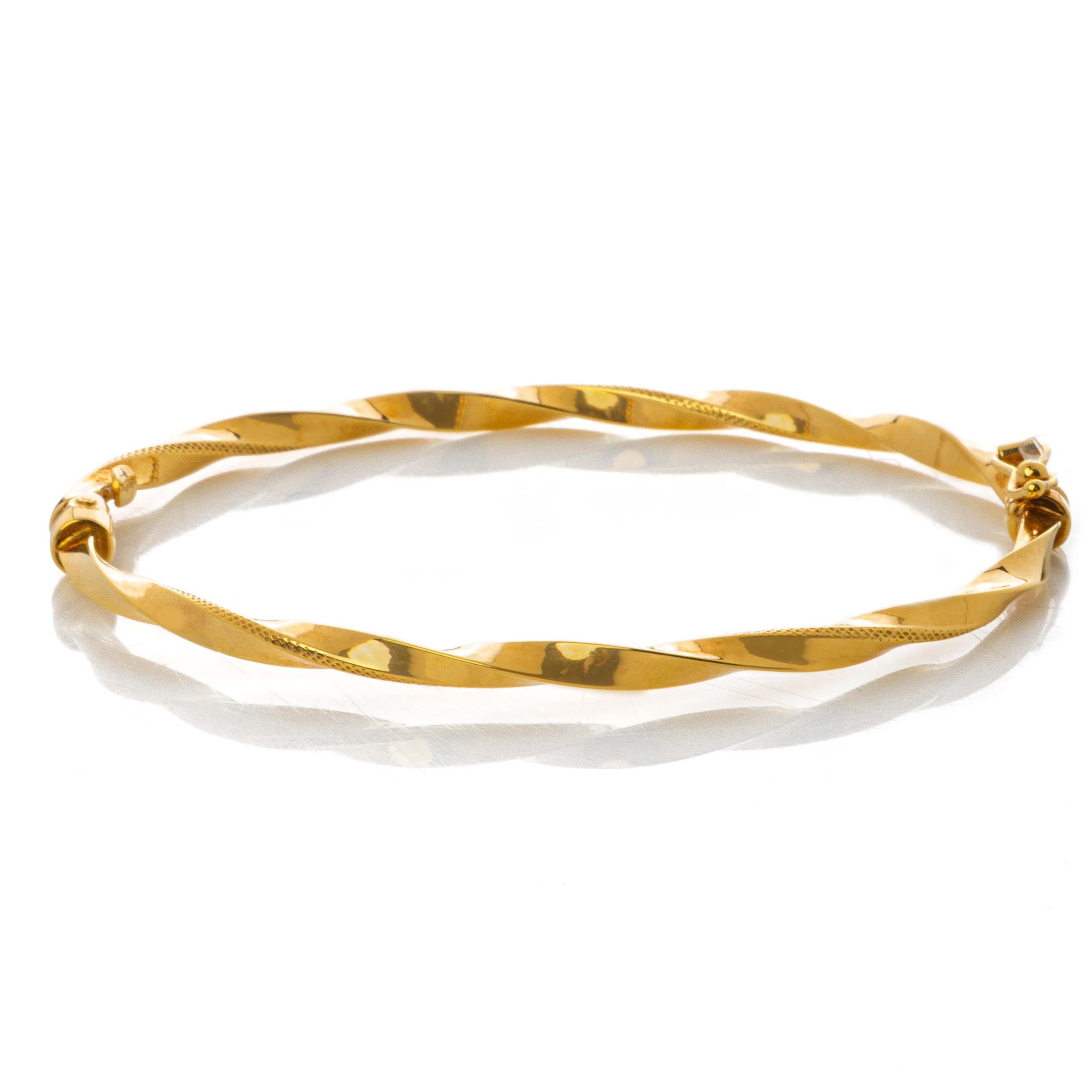 Κλασικό, σταθερό βραχιόλι σε σχέδιο χειροπέδα από κίτρινο χρυσό 14 καρατίων (585). Διαθέτει κούμπωμα ασφαλείας.