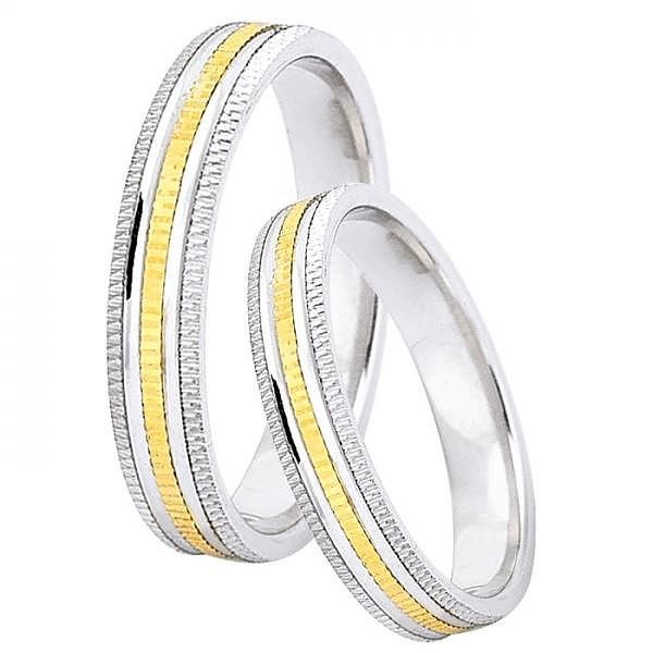 Ζευγάρι βέρες Dekagold, δίχρωμες από χρυσό και λευκόχρυσο 14 καρατίων. Σχέδιο gd226-028