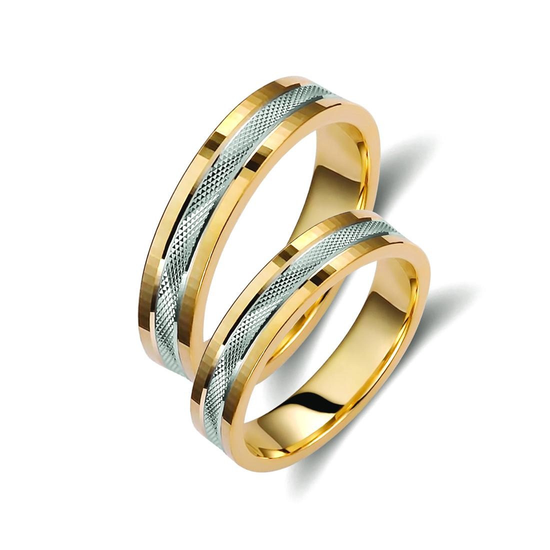 Ζευγάρι βέρες δίχρωμες χρυσό και λευκόχρυσο.Σχέδιο 140a-aa